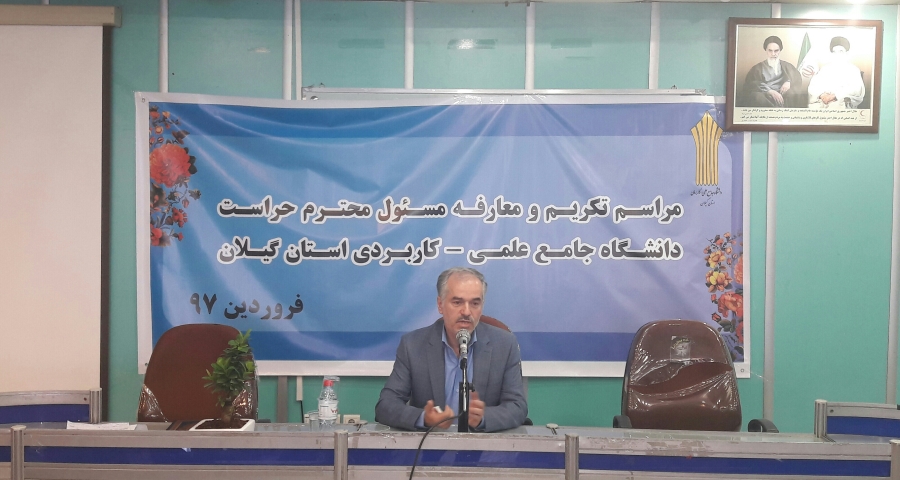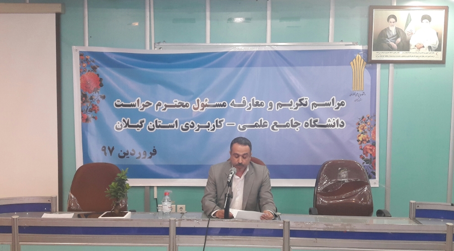 مراسم تکریم مسئول پیشین و معارفه مسئول جدید حراست دانشگاه علمی کاربردی استان گیلان روز چهارشنبه مورخ ۹۷/۱/۲۲ در مرکز آموزش علمی کاربردی هلال احمر با حضور نماینده حراست مرکزی دانشگاه، جمعی از مسئولین استانی، ریاست و معاونین دانشگاه جامع علمی کاربردی استان گیلان و روسای مراکز آموزشی استان برگزار گردید.
