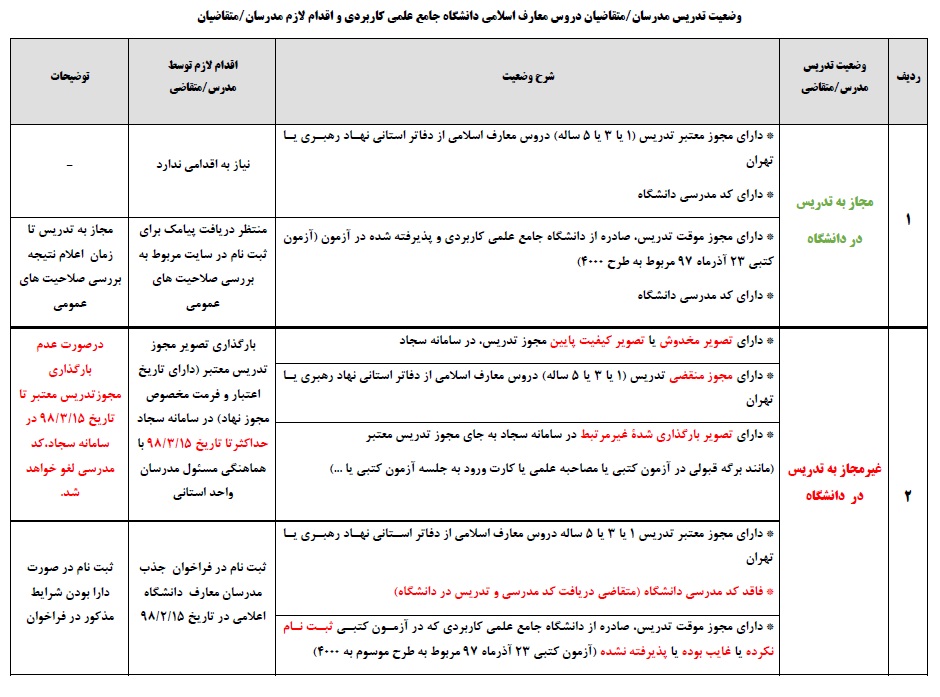 فراخوان دعوت به همکاری مدرس حق التدریس دروس معارف اسلامی در دانشگاه جامع علمی کاربردی