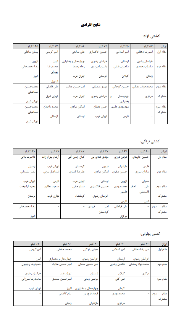 نتایج این دوره از مسابقات در بخش انفرادی به شرح زیر می باشد: